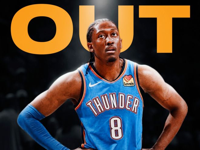 雷霆亚历山大(腹部拉伤)、阿杰伊·米切尔(腹部拉伤)、托皮奇(睾丸手术)和索伯(ACL撕裂)伤缺。