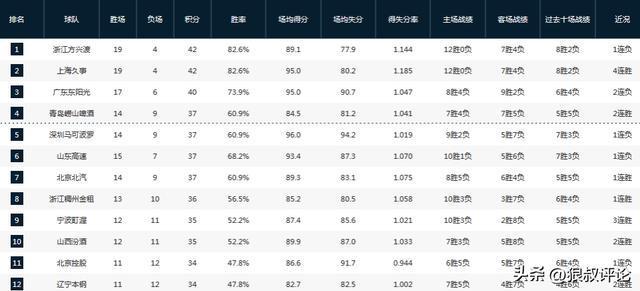 新赛季至今,广东男篮的战绩为17胜6负,排在积分榜第3位,主场的战绩为8胜4负。