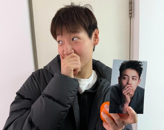 杨舒予晒出的搞怪照中,张茹模仿杨舒予左手放在嘴前,眼睛往右边一瞥的表情包。相比之下,张茹脸上有点憋笑的意思。显然她是非常开心地模仿杨舒予。李星诺也参与了这个活动,模仿杨舒予的这个表情包。