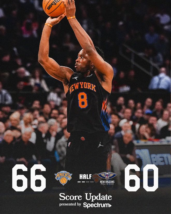 尼克斯队的布伦森得到32分和7次助攻,唐斯得到21分和14个篮板,阿奴诺比得到21分、4个篮板和4次助攻,布里奇斯得到14分和7次助攻,罗宾逊得到11分和8个篮板,克拉克森得到10分和5次助攻,哈特得到10分和7个篮板。鹈鹕队的锡安得到22分和4个篮板,费尔斯得到21分,贝得到18分和4个篮板,墨菲得到16分和6个篮板,琼斯得到13分和6次助攻,马特科维奇得到12分,穆雷得到7分、5个篮板和12次助攻。