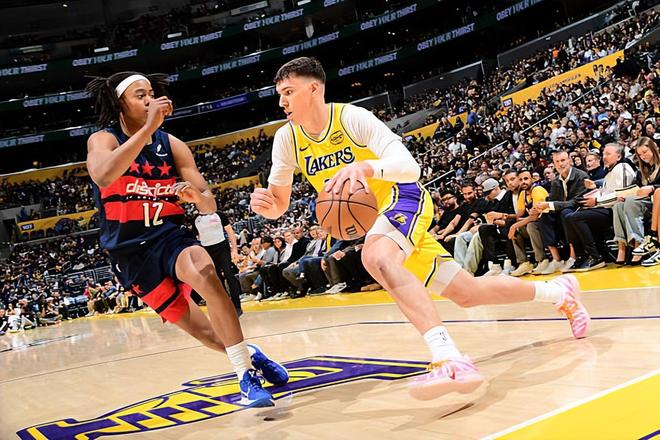 本场比赛中,湖人的先发锋线新星杰克-拉拉维亚(Jake LaRavia)的表现也还算不错。拉拉维亚全场出场27分54秒,投篮3中2,得到了4分3篮板2助攻3抢断1盖帽的数据,还有3次犯规,正负值则是达到了全场次高的+23。拉拉维亚在进攻端没有什么太多的输出,也没有得到什么太多的出手机会,因此表现非常一般。不过他在防守端的表现其实是非常出色的,他也是将自己超强的防守积极性和活力发挥了出来,在防守端的效果相当不错。拉拉维亚的出场时间并不多,但是他在场上时球队的整体局面也是值得肯定的,这也能够体现在他超高的正负值上。拉拉维亚在本场比赛中也算是发挥出了自己的价值,并且为球队的胜利做出了自己的贡献。