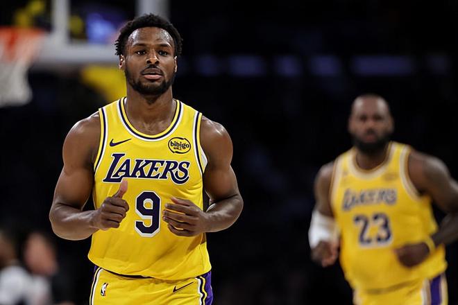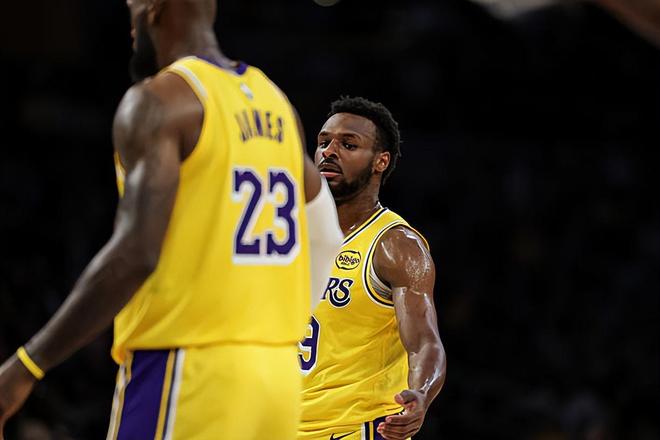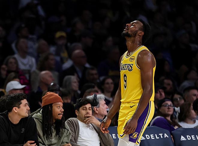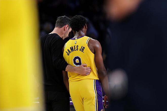 本场比赛中,由于湖人缺兵少将,球队的替补后场新星布朗尼-詹姆斯(Bronny James)又一次得到了进入轮换阵容的机会。布朗尼全场出场25分39秒,投篮10中2,三分线外5中0,罚球2中2,得到了6分1篮板1助攻1抢断的数据,还有2次失误和2次犯规,正负值为+4。布朗尼算是得到了不少的出场时间和表现机会了,而且他的出手次数也并不少,但是他的进攻效率一塌糊涂,在外线投篮方面的手感更是惨不忍睹,他也没有办法得到更多的分数。作为一名后场球员,失误数比助攻数还多,也能够说明布朗尼在传球和组织方面的表现也是不太理想的。不过另一方面,布朗尼在防守端的表现还是相当不错的,他也是展现出了自己很强的个人防守能力的,这一点也是值得肯定的。只是布朗尼在攻防两端的表现确实是差别太大了一些,这也是令人有些担心的。