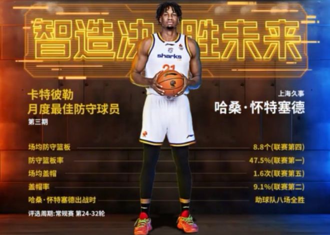 正是由于怀特塞德的出色表现,他防守效率高居CBA联赛前列,让他成功当选第3期月度最佳防守球员。