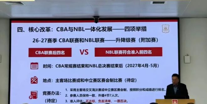 目前CBA公司已经是开始为明年做规划了,根据CBA开会的过程当中我们可以了解到,CBA将会是重启升降级的制度,在过去的十几年当中,CBA一共就是只有20支队伍的,之前很多球队想要加入进来都被拒绝了,像是安徽文一、香港金牛等等这些球队,因为在NBL非常吃香,但是始终敲不开CBA的大门,但是从2027年开始将会试行升降级的制度,主要就是对于CBA联赛后四名的球队跟NBL前四名的队伍进行对决,输掉的球队将会降级发展!