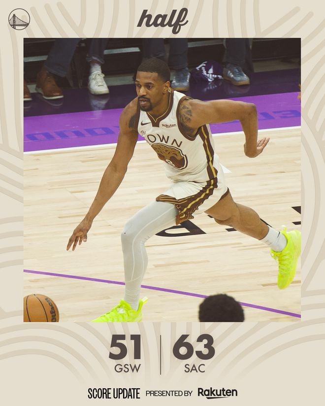 国王队的卡特和克里福德上半场各得到12分,蒙克得到11分;勇士队的梅尔顿得到17分,库里6投1中,只得到3分、2次助攻。