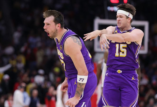 首先,湖人本赛季常规赛遇到火箭3次,湖人2胜1负占据上风,但关键是赢下的那两场比赛,湖人都有东契奇和里夫斯。火箭虽然防守配置强悍,但确实很难同时面对两大得分点+詹姆斯的高效输出。那第一个问题,东契奇和里夫斯,到底什么时候能回归?首先是东契奇,遭遇二级腿筋拉伤后,火速飞赴欧洲接受注射治疗。而当时斯洛文尼亚媒体跟进报道,东契奇有望在首轮回归。但没过几天,事情发生大转折,通过在西班牙治疗结果显示,东契奇的伤情,比一开始外界知晓的更严重!简单来说,湖人可能隐瞒了一些情况。