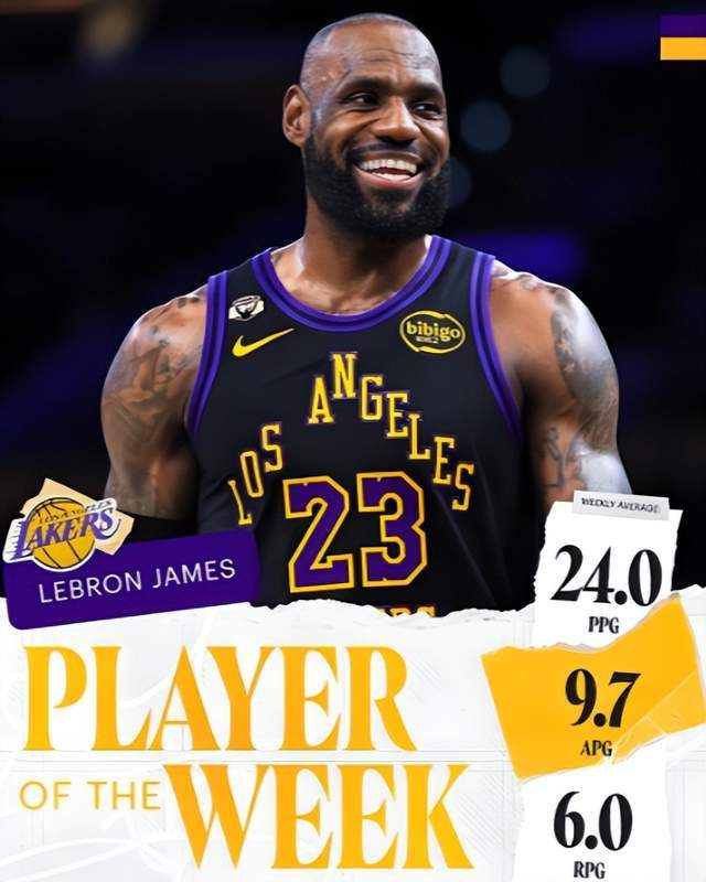 昨日,NBA官方公布了常规赛第25周的周最佳球员,东部周最佳给到猛龙英格拉姆,而西部周最佳归属于湖人老将詹姆斯。