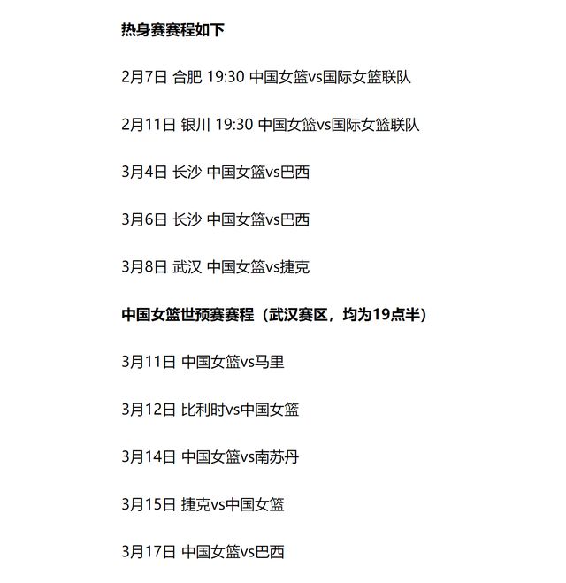 是的,中国女篮国家队的赛事又将开始了,从今天开始一直到3月17日,38天的时间里,中国队已经确定要打5场热身赛,以及5场世预赛。加油,无畏金兰的铿锵玫瑰。