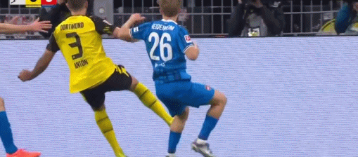 第44分钟,拉马伊脱手,安东破门,多特1-0海登海姆