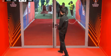 第74分钟,埃格施泰因抢球直接踩到帕尔多脚踝,裁判出示直红将其罚下