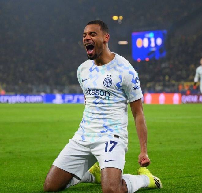 易边再战,替补登场的埃斯波西托在第63分钟获得了绝佳的起脚机会,可惜被本塞拜尼及时回防破坏,没有能够形成打门,第80分钟国米在多特大禁区前沿,获得了一个位置非常好的定位球机会,迪马尔科世界波破门,帮助蓝黑军团取得了1-0的领先。
