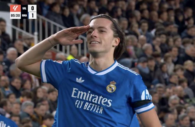 西甲第23轮,皇家马德里客场对阵瓦伦西亚,下半场赫伊森助攻卡雷拉斯破门,这是自2022年4月以来首次有皇马后卫在客场比赛中连线进球。