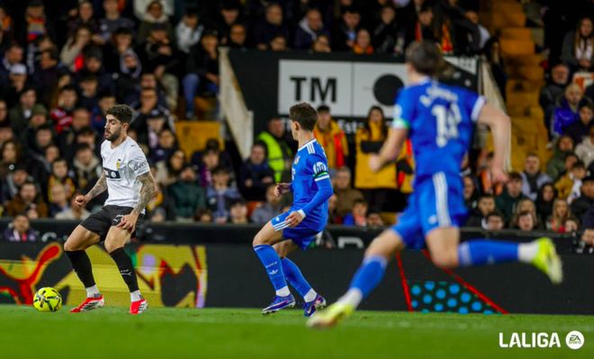 仅仅5分钟后,瓦伦西亚差点扳平比分,接到里奥哈的传中,贝尔特兰的抢射稍稍偏出。