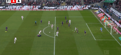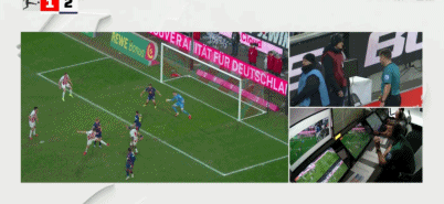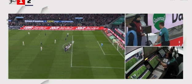 半自动越位技术显示,刚刚科隆被取消的点球仅仅脚后跟越位