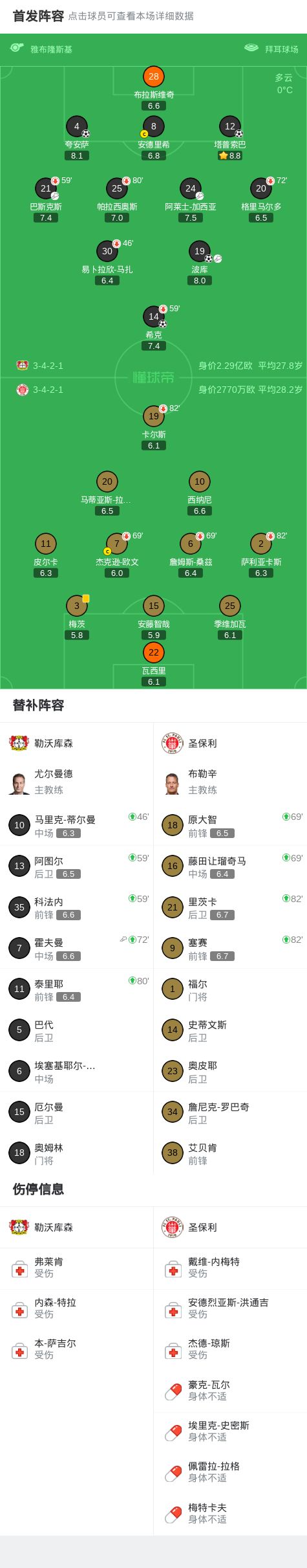 北京时间2月14日德国足球顶级联赛 第22轮,勒沃库森主场对阵圣保利。勒沃库森夸安萨头球打在门将身上弹入球门,1分钟后希克头球再下一城,下半场塔普索巴角球中头球破门,第78分钟波库破门,上演一传一射。最终比分勒沃库森 4-0 圣保利。