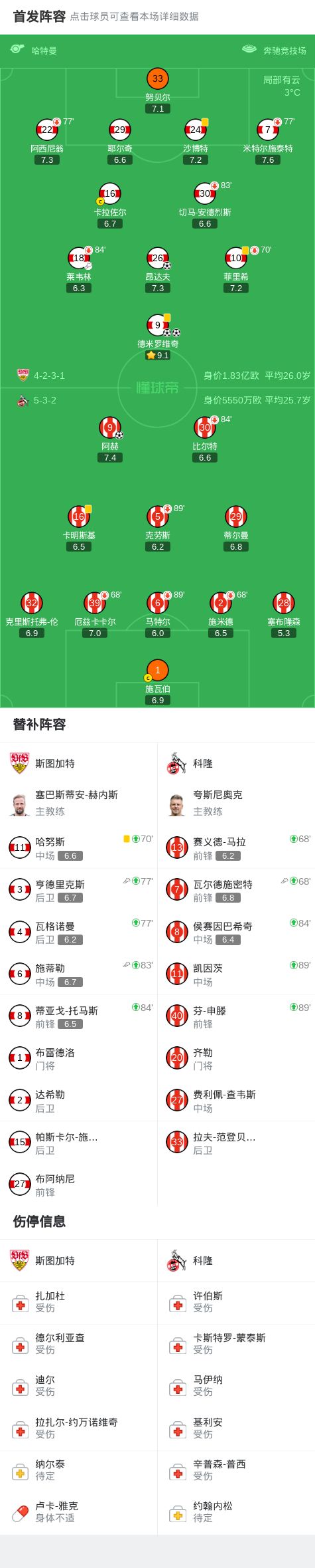 北京时间2月15日德国足球顶级联赛 联赛 第22轮,斯图加特主场对阵科隆。斯图加特德米罗维奇梅开二度,昂达夫破门。科隆阿赫破门。最终比分斯图加特 3-1 科隆。