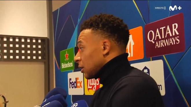 欧冠附加赛首回合,皇马在里斯本光明球场以1-0小胜对手。结束这场火星四射的比赛后,前锋姆巴佩在混合区接受了媒体采访。