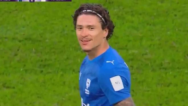 在代表新月在亚冠攻入制胜进球后,努涅斯向看台上的高层送上了凝视,脸上带着饱含深意的微笑,随后自言自语了一句,似乎是在抗议球队将他排除出联赛名单的决定。