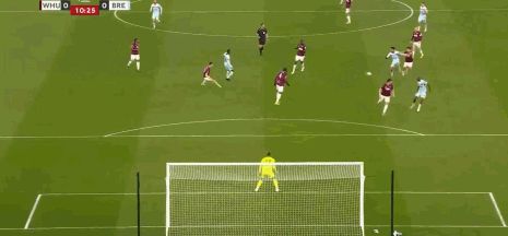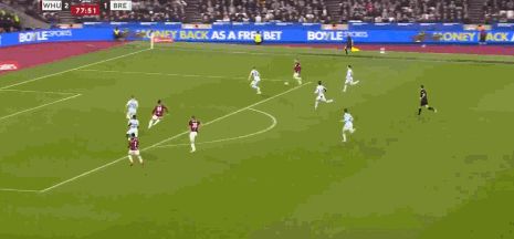 第34分钟,卡约德绊倒特拉奥雷送点,鲍恩主罚命中,西汉姆联2-1