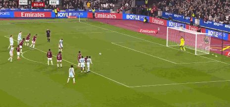 第82分钟,卡约德造点,蒂亚戈主罚命中,布伦特福德2-2