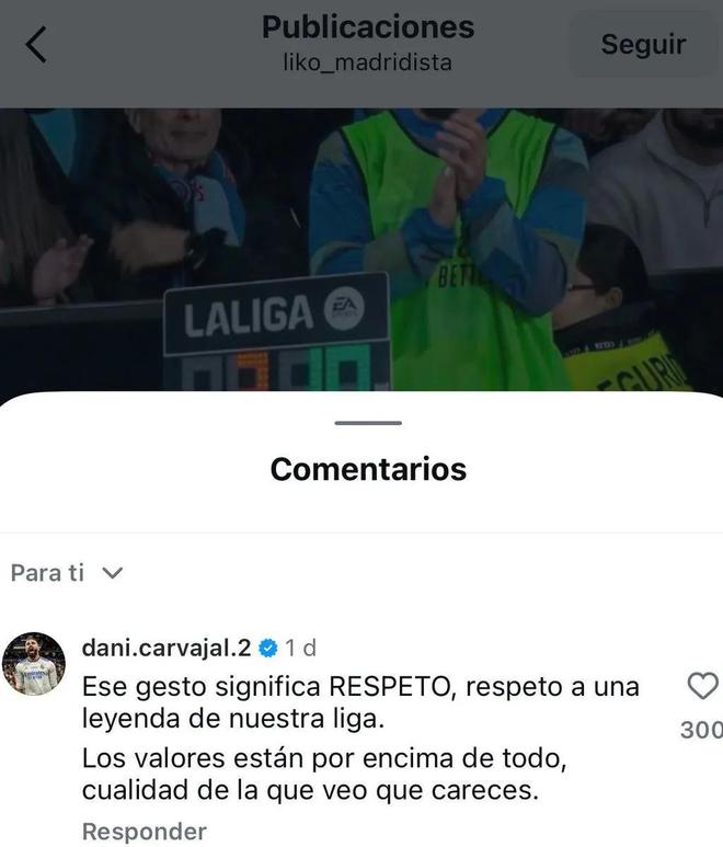 卡瓦哈尔在社媒上回复了一名指责他为塞尔塔传奇鼓掌的用户:“这个举动代表尊重,是对我们联赛传奇的尊重。价值观高于一切,这正是我看到你所缺乏的品质。”