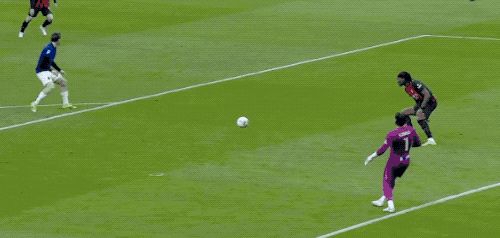 比赛开始后,节奏瞬间拉满,火药味十足。开打仅仅4分钟,国米门将索默就出现致命失误。面对米兰的高位逼抢,他在后场的出球被普利希奇断下,随后美国球星迅速倒三角回敲,埋伏在禁区外的莫德里奇迎球就是一脚势大力沉的远射,皮球擦着立柱飞出底线,国米逃过一劫。
