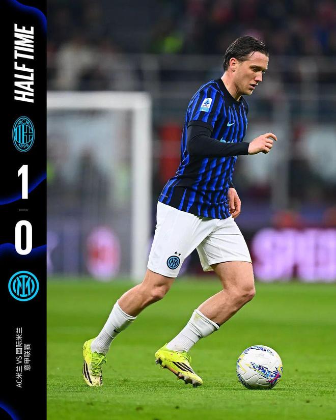 上半场比赛结束,我们暂时0比1落后于AC米兰。