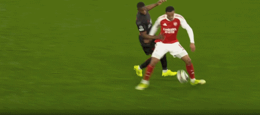 第22分钟,加布里埃尔封堵射门时被球闷到下巴,队医进场治疗