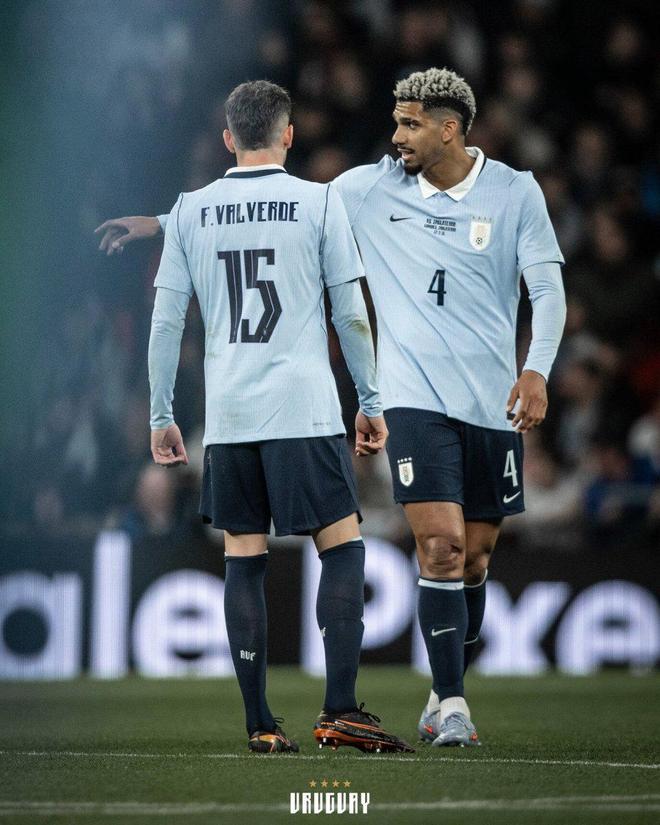 就在今天,乌拉圭国家队官方社交媒体发布了一张意味深长的合影。画面中站在最中央的,是两位如今足坛最炙手可热的球员,皇家马德里队长巴尔韦德,以及巴塞罗那队长阿劳霍。
