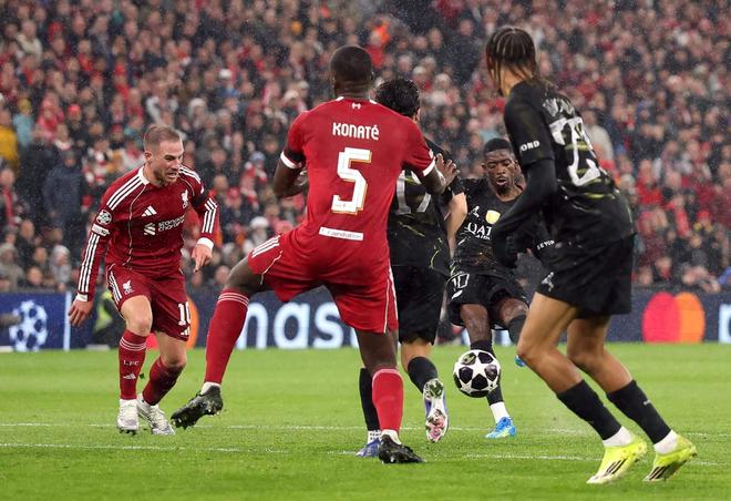 人们期待典型的狂热欧洲主场氛围能早早让客队感到不安,但这一期待很快落空——巴黎圣日耳曼从一开始就展现出威胁。他们前场三叉戟——克瓦拉茨赫利亚、登贝莱和杜埃的跑动给范戴克及其后防队友们制造了与上周在巴黎时同样多的麻烦。
