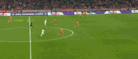 慢镜头回放显示:吕迪格尝试策动长传发动快攻,皮球被拜仁后卫拦截后,居莱尔迅速将球分至左路空档,维尼修斯如离弦之箭沿边线狂奔,在底线附近形成单刀之势。