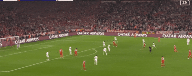 那一球,皇马除了熊与姆巴佩,都已回撤禁区,但拜仁禁区前排开八个人。基米希还在抬手要球:人多,要利用宽度啊!